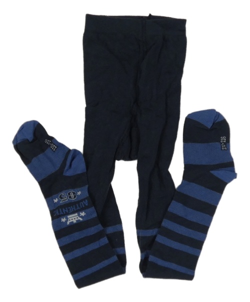 Tmavomodro-modré pruhované pančuchy s číslom a nápisom cool&young