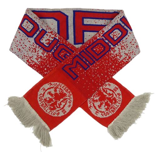 Červeno-sivá hokejová šál s nápisom a strapcemi