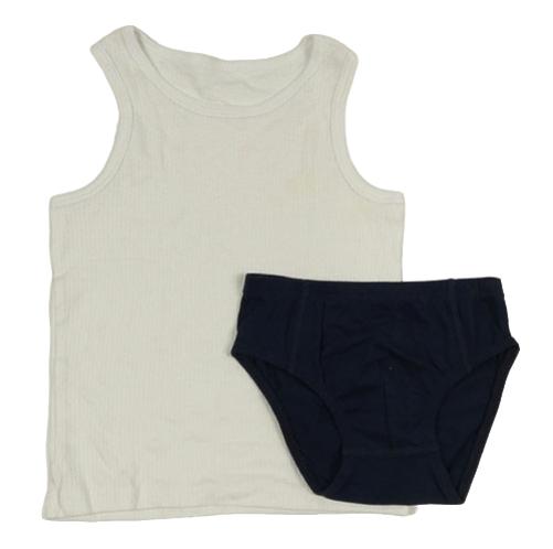 2set - Biely rebrovaný nátělník + tmavomodré slipy