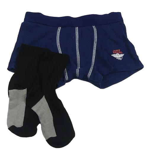 2set - Tmavomodré boxerky s loďkou + čierno-sivé ponožky