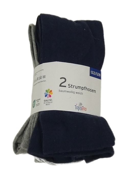 Nové - 2x - Punčocháče - Tmavomodré, šedé melírované Topolino