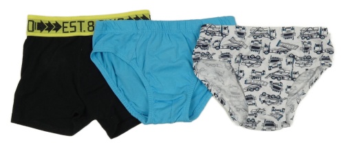 3x - Tyrkysové slipy + biele slipy s auty + čierne boxerky