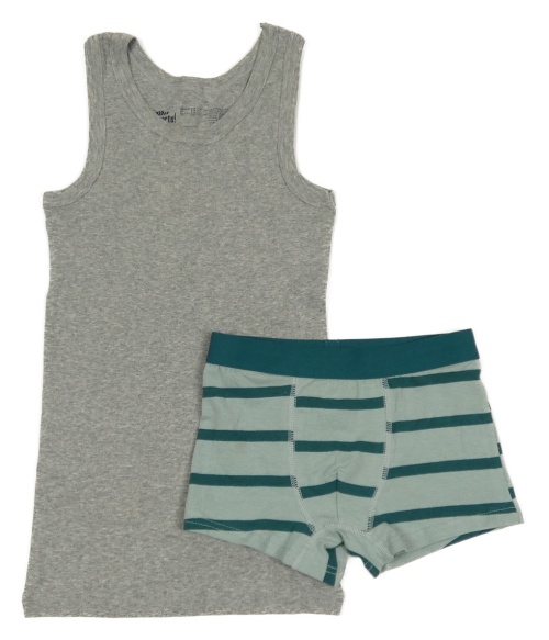 2Set - Šedý melírovaný nátělník Pepperts! + světlekhaki/smaragdové pruhované trenýrky L&D
