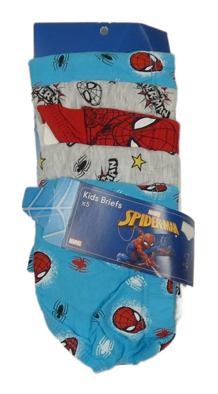 Nové - 5pack - 2x tyrkysové + 2x sivé + 1x červené slipy so Spider-manem Marvel