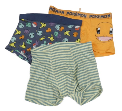 3x boxerky - oranžové s Pokémonem + smetanovo-zelené pruhované + tmavomodré s Pokémony H&M