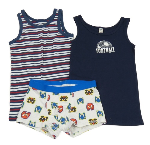• 3set - 2x nátělník - tmavomodrý s potiskem + tmavomodro-bielo-červený pruhovaný + 1x boxerky so Sonicem