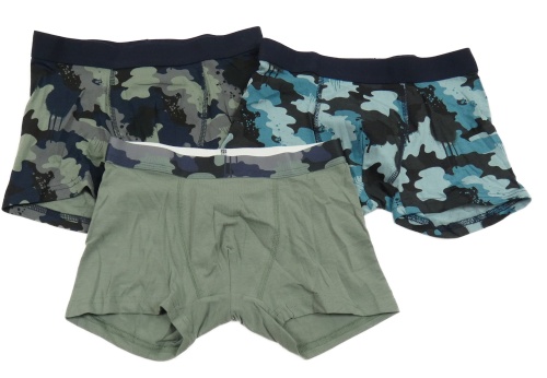 3x boxerky - khaki + modro-tmavomodré army + šedo-černé army C&A