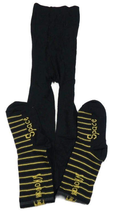 Čierne pančuchy s raketami a žlto-tmavosivymi pruhmi