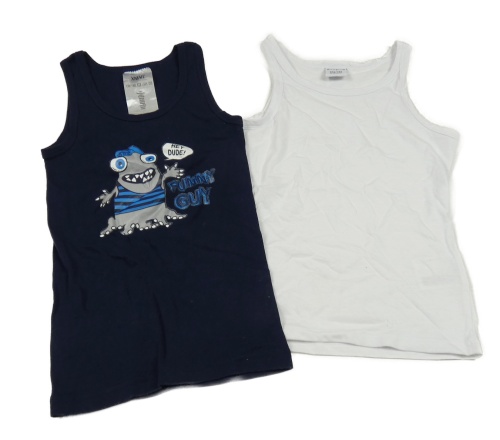 2x nátělník - bílý + tmavomodrý s príšerkou