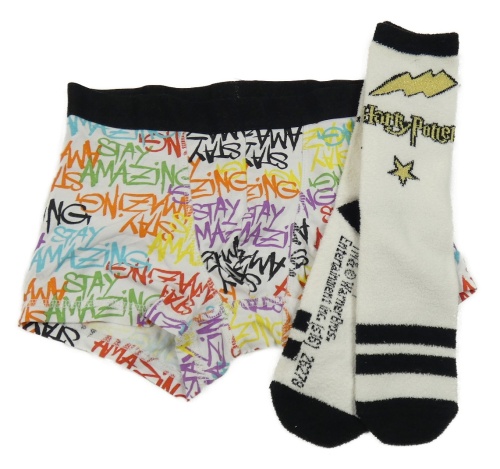 2set - Bielo-farebné boxerky s nápisy + ponožky - Harry Potter