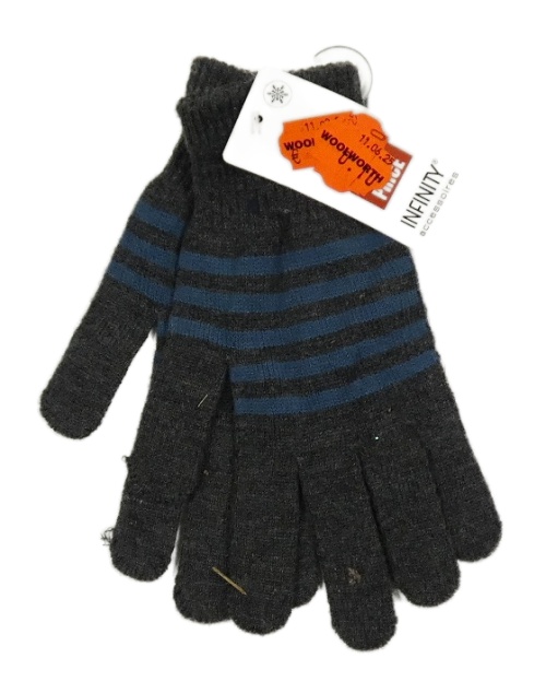 Nové - Tmavošedo-modré prstové pletené rukavice s pruhmi