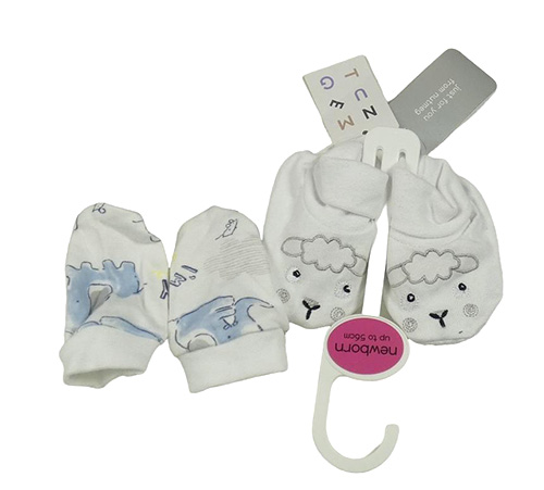 2set - Biele bavlnená cápačky s ovcí + bílé rukavičky so slonmi