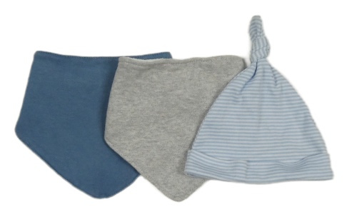 3set - 2x slinták - sivý + tmavomodrý + 1x modro-biela pruhovaná čapica