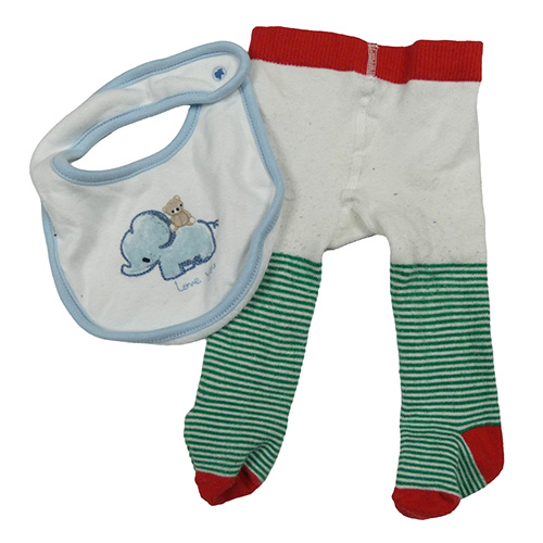 2 set - bielo-modrý podbradník so slonem + bielo-zeleno-červené pruhované pančuchy