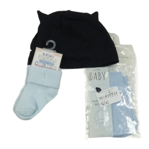 Nové - 3 set - modré ponožky + rukavice + čierna čapica