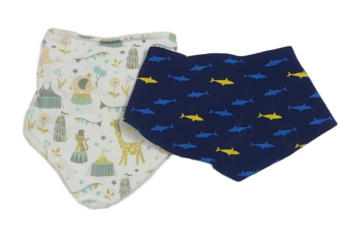 2x slinták - bílý so zvířaty + modro-bílý pruhovaný
