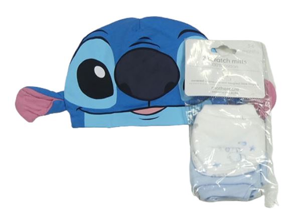 2 set - Modrá čepice - Stitch + 2x bílé + modré rukavice