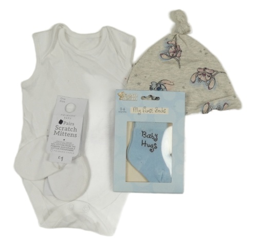 Nové - 4set - Biele body + sivá čepice + biele rukavice + modré ponožky