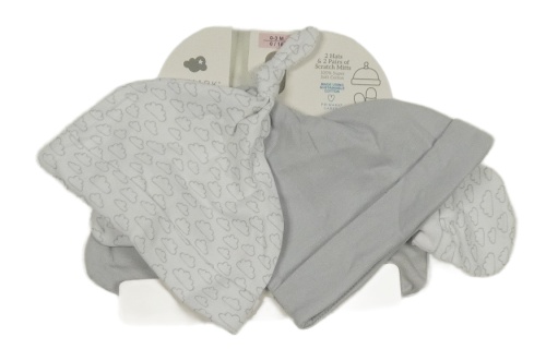 Nové - 4set - 2x bílo-šedá čepice + 2x bílo-šedé bavlněné rukavice Primark