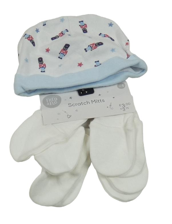 Nové - 5 set - 4x smotanové rukavice + bielo-modrá čapica s vojáčky