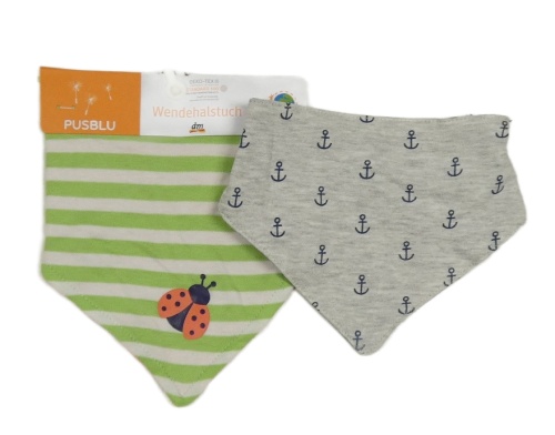 2x slinták - šedý melírovaný s kotvami + zeleno-bílý pruhovaný s lienkou