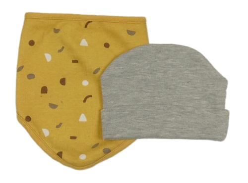 2set - Šedá čepice + okrový slinták so vzorom