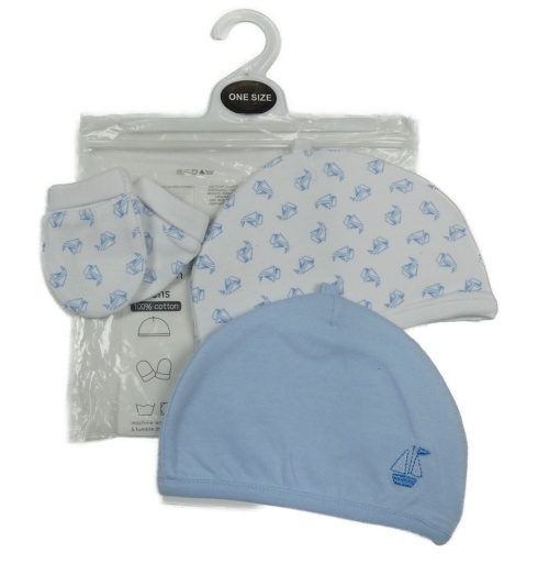 • Nové - 4set - 2x čepice - modrá + biela s loďkami + 2x rukavičky bílé s loďkami Primark