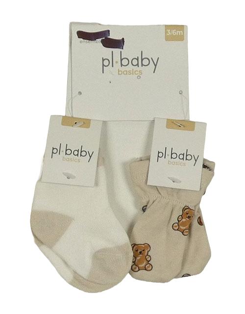 Nové - 2set - Smetanové ponožky + béžové rukavičky s medveďmi