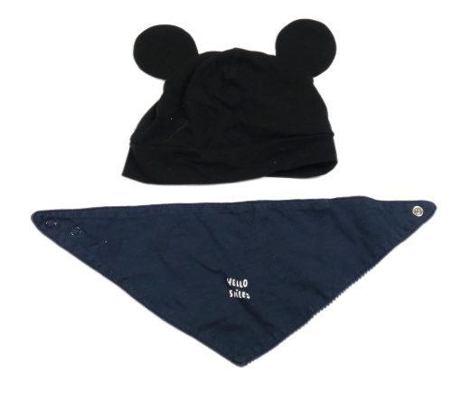 2set - Čierna čapica s oušky + tmavomodrý slinták s nápisom