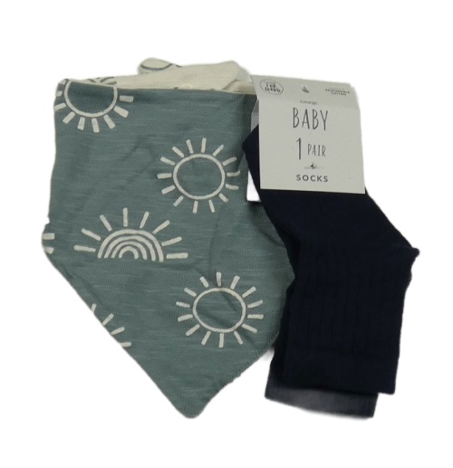 2set- khaki slintáček so sluníčky+ čierne ponožky