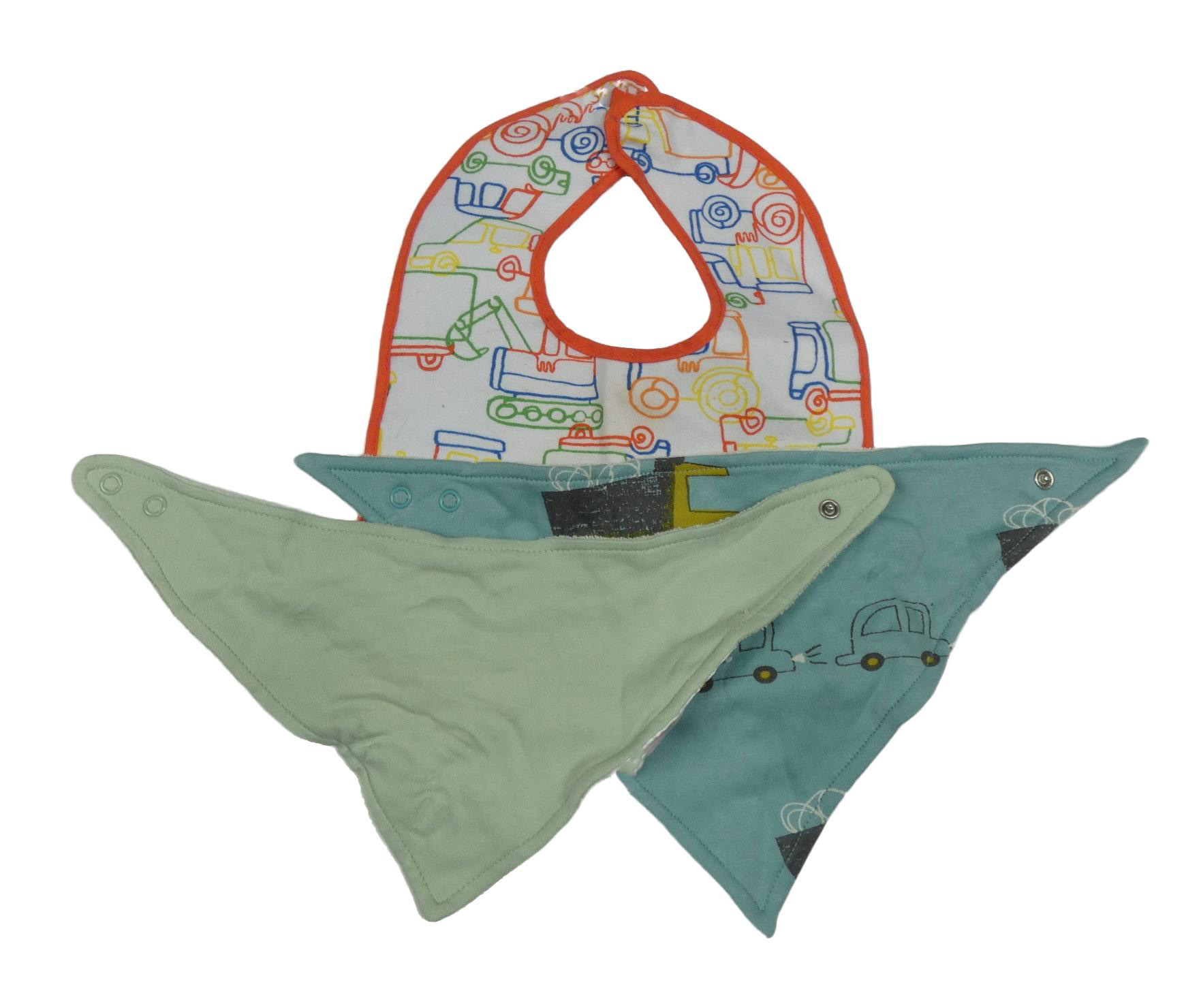 3 set - bielo-červený podbradník s bagry + zelený a modrý slinták