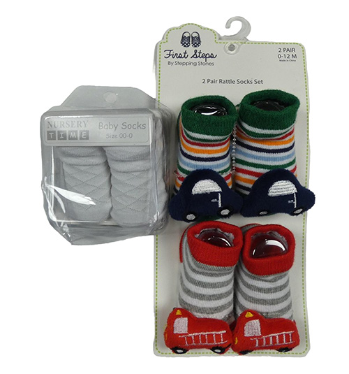 • Nové - 3x ponožky - bílé kárované + barevné pruhované s auty + šedo-bílé pruhované s hasiči