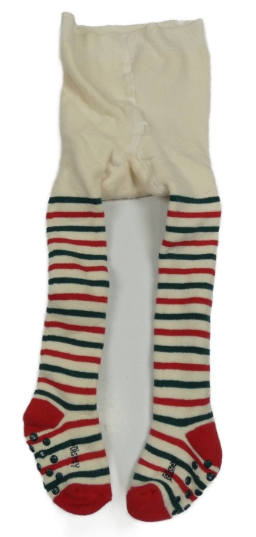 Krémovo-zeleno-červené pruhované thermo pančuchy s Donaldem Disney