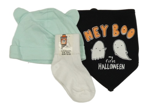3 set - bílé ponožky + černý slinták s duchy + mintová čapica