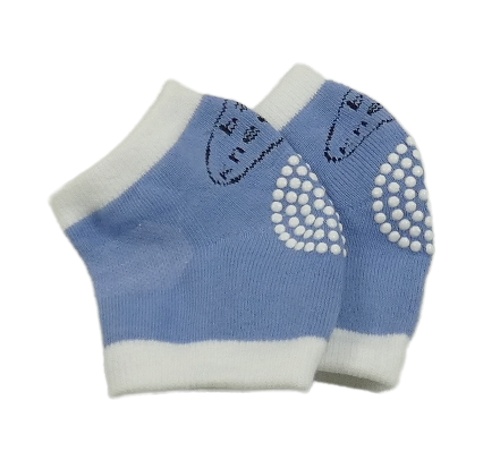 Modro-bílé pletené návleky na kolena s gumovými bodky