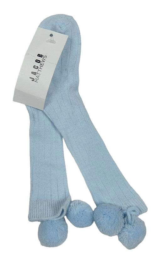 Nové - Světlemodré žebrované podkolenky s bambulemi