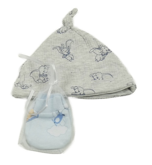 2 set - šedá bavlněná čepička s Dumbem + modré rukavičky s obrázkami