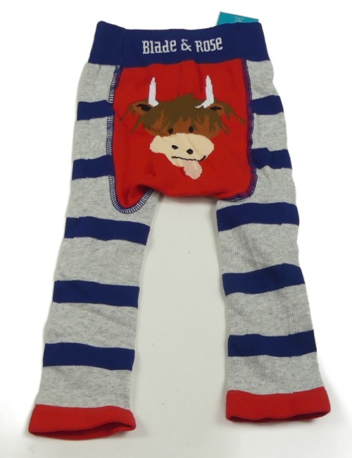Nové - Tmavomodro-šedé pruhované punčocháče bez šlapiček s buvolem Blade&Rose