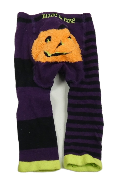 Fialovo-čierne pruhované pančuskové legíny s tekvicou