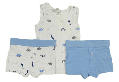 3Set - Bílý nátělník so zvířátky + modré boxerky + bílo/modré boxerky so zvieratkami Topomini