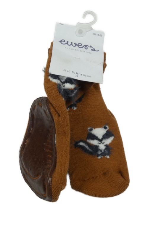 Nové - Hnedé protiskluzové ponožkové papučky s mývaly vel. 18/19