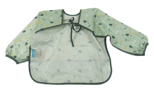 Světlekhaki-tmavokhaki šusťákový bryndák/zástěra s dinosaurami