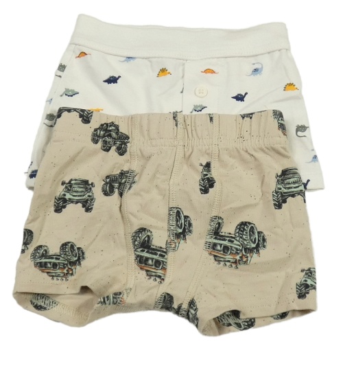 2set - 2x boxerky - béžové s traktory + bílé s diny