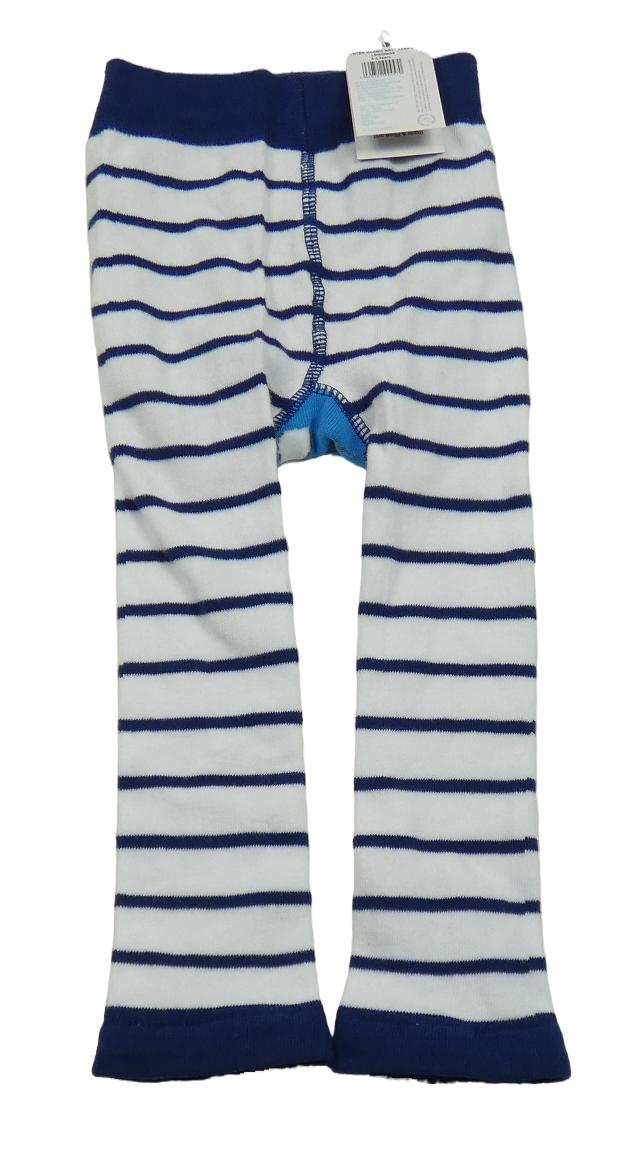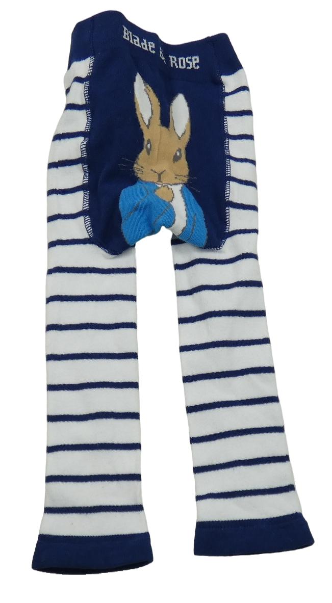 Nové - Bielo-tmavomodré pruhované pančuskové legíny s králikom