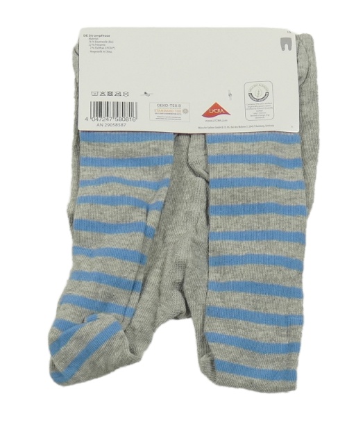 Nové - Sivé melírované pančuchy s modrymi pruhmi a sloníkem POCOPIANO