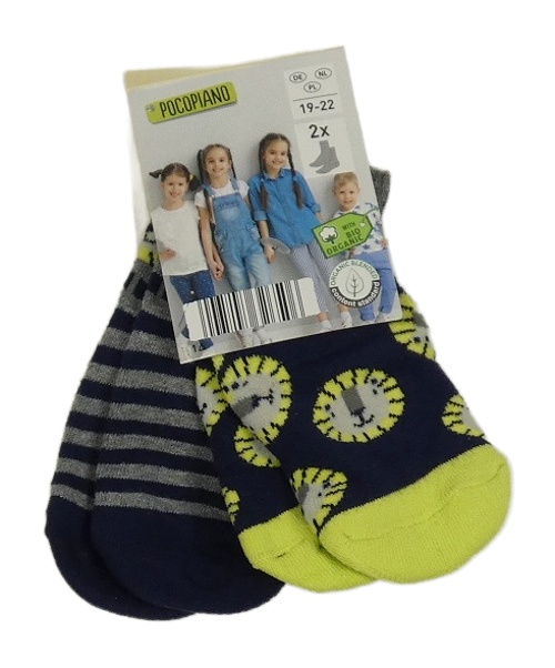 Nové - 2x ponožky - tmavomodré s lvy + tmavomodro-šedé pruhované Pocopiano