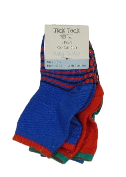 Nové - 3x - Modré + zelené + červené ponožky s prúžkami Tick Tock vel. 19-22