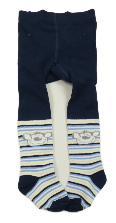 Nové - tmavomodro-pruhované pančuchy s opičkou