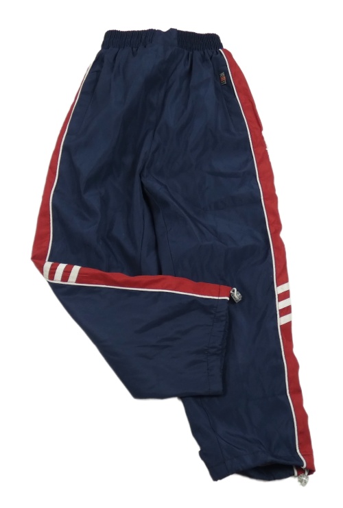 Tmavomodro-červené šušťákové podšité nohavice s pruhmi