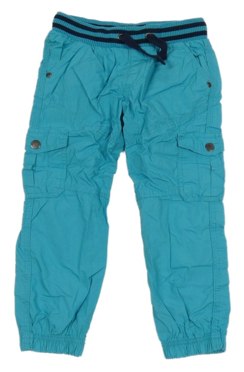 Azurové plátenné cargo cuff nohavice s úpletovým pasom Topolino